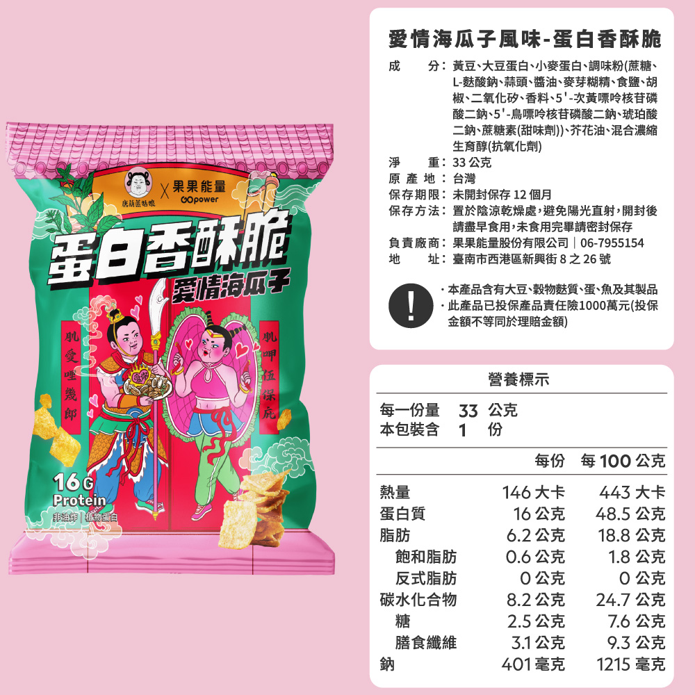 果果能量與創作者糖葫蘆首次聯名!以「愛情惠成宮」概念,打造「愛情海瓜子蛋白香酥脆」,獻給養肌之路上的善男信女。